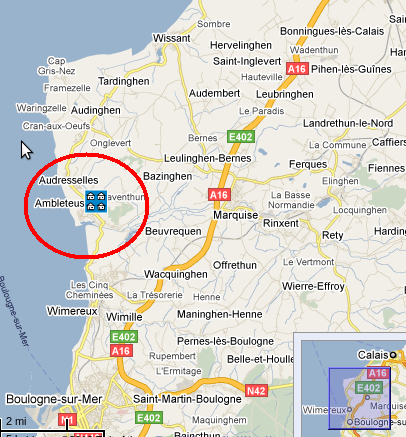 - En venant du S/SE (via Boulogne) , la sortie conseillée est la sortie 33 "Wacquinghen,wimille,Wimereux-nord, la Tésorerie": la D237 vous mènera au nord de Wimereux, sur la route de la côte que vous remonterez (vers le nord) jusqu'à Ambleteuse.